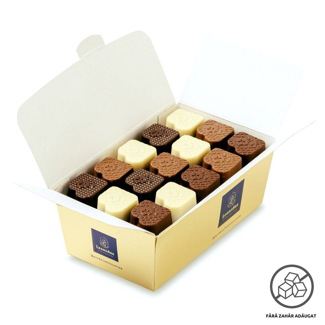 Ballotin Low in Sugar cu un mix de 12 praline belgiene Leonidas, fără zahăr adăugat. Produsele conțin zaharul natural din lapte (lactoză), iar zahărul utilizat normal în prepararea lor este înlocuit de îndulcitori naturali (maltitol). Punga de cadou Leonidas și hârtia din mătase sunt incluse. Poza este cu titlu de prezentare, iar pralinele pot diferi.
