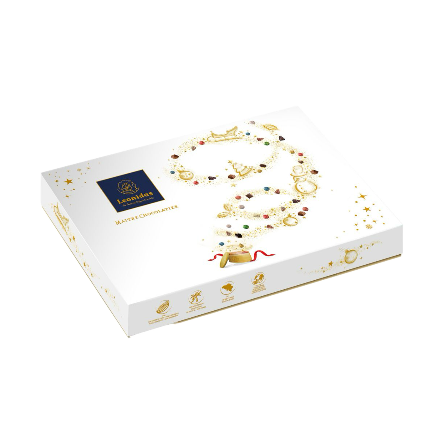 Premium Christmas este o cutie Ediție de Crăciun cu un mix de 42 praline belgiene Leonidas din cea mai fină ciocolată belgiană. Poza este cu titlu de prezentare iar pralinele și panglica pot diferi. Pungă cadou și hârtie de mătase incluse.